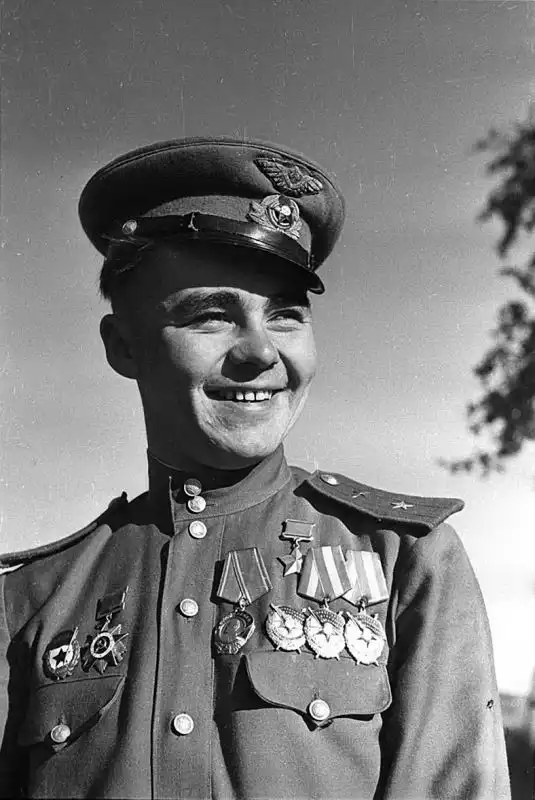 Littolf was killed in air combat on 16 July 1943, just one month after this photograph was taken. He was posthumously awarded the Order of the Patriotic War, 1st Class.